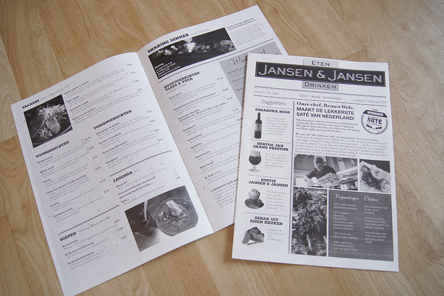 Eetcafé Jansen & Jansen in Schijndel had al 10 jaar het menu op een placemat staan en daar wilden zij verandering in. Het speciale aan de placemat was dat de datum, verjaardagen en citaten van de dag erop stonden. Dit wilden zij graag behouden en mede daarom werd de nieuwe vorm van de menukaart een krant.